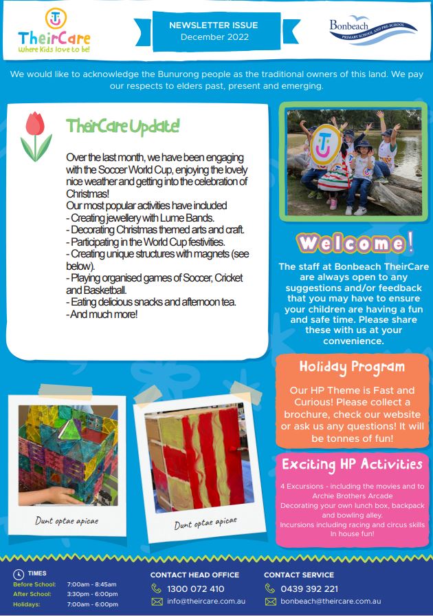 We wish everyone a Merry Christmas and a Happy New Year. We hope you have a fun filled and safe holiday and we look forward to seeing everyone back on the 1st day next year. Tuesday 31st January for Years 1- 6 and Thursday 2nd February for Preps.