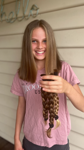 My name is Maive, I am in year 6 and I have just cut my hair for the third time as part of The Worlds Greatest Shave. It took me 4 years to grow it long enough this time. My hair will be used to make medical wigs for people with cancer or alopecia. I feel happy knowing I can help people when they may be feeling sad.