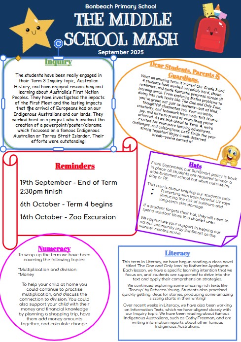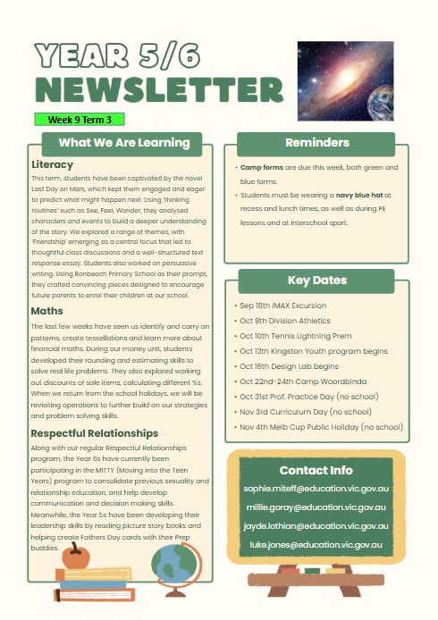 To our dedicated staff – thank you for the passion, energy and care you bring into every classroom and playground space. To our families – we are so grateful for your ongoing support, encouragement and partnership in your child’s learning. To our students – congratulations on a fantastic term of learning, growth and achievement. You continue to make us proud every day with your curiosity, kindness and resilience.