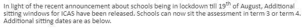 Below is an update regarding the ICAS assessments from UNSW. For anyone wishing to register their child, please learn more about ICAS here: https://www.unswglobal.unsw.edu.au/